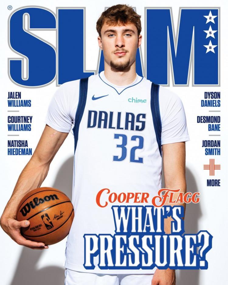 直播吧8月26日讯 今日,知名篮球杂志SLAM晒出了最新一期的封面,封面人物为独行侠新秀库珀-弗拉格。
