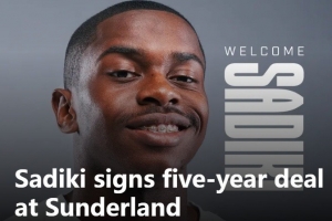 体育资讯7月5日讯 英超升班马桑德兰官方宣布,签下20岁的民主刚果中场诺亚-萨迪基,双方签约五年。