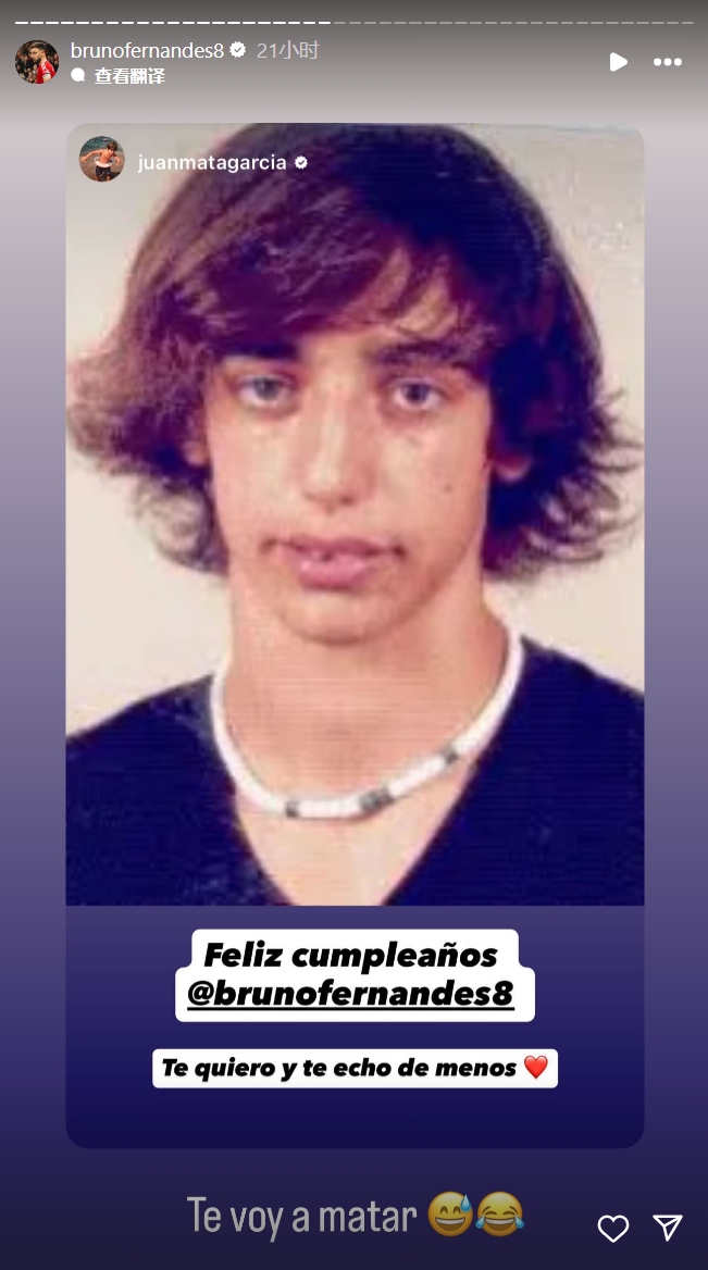 B费度过31岁生日,前队友马塔在社媒晒出了B费早年的一张照片。