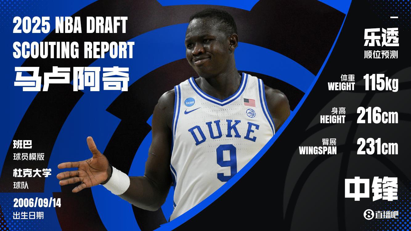 直播吧6月18日讯 今天,名记Jake Fischer撰文谈到了今年的选秀。Jake Fischer写道,消息人士透露,由于有人认为有球队会在猛龙(拥有9号签)之前选走南苏丹中锋马卢阿奇,猛龙这个签位被交易的预期上升了。有消息称猛龙正在评估那些首轮后段的中锋,听说密歇根大学的丹尼-沃尔夫和佐治亚大学的阿萨-纽厄尔都是候选人。消息人士透露,马卢阿奇已经拜访过奇...