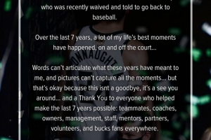 言语无法表达这些年对我意味着什么,照片也无法捕捉所有的瞬间。但没关系,因为这不是告别,而是“后会有期”。感谢所有在过去 7 年里帮助过我的人:队友、教练、老板、管理层、工作人员、导师、合作伙伴、志愿者,以及每一位雄鹿球迷。